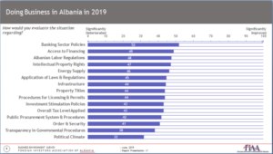 During a mid-year event in June, FIAA presented the outcomes of its Business Environment Survey 2019. The Survey was conducted among the Membership of FIAA which are the most important foreign businesses in the country, operating in various industries such as, energy, oil, mining, banking, telecommunications, manufacturing, etc, that represent the biggest part of the FDI-s in Albania.