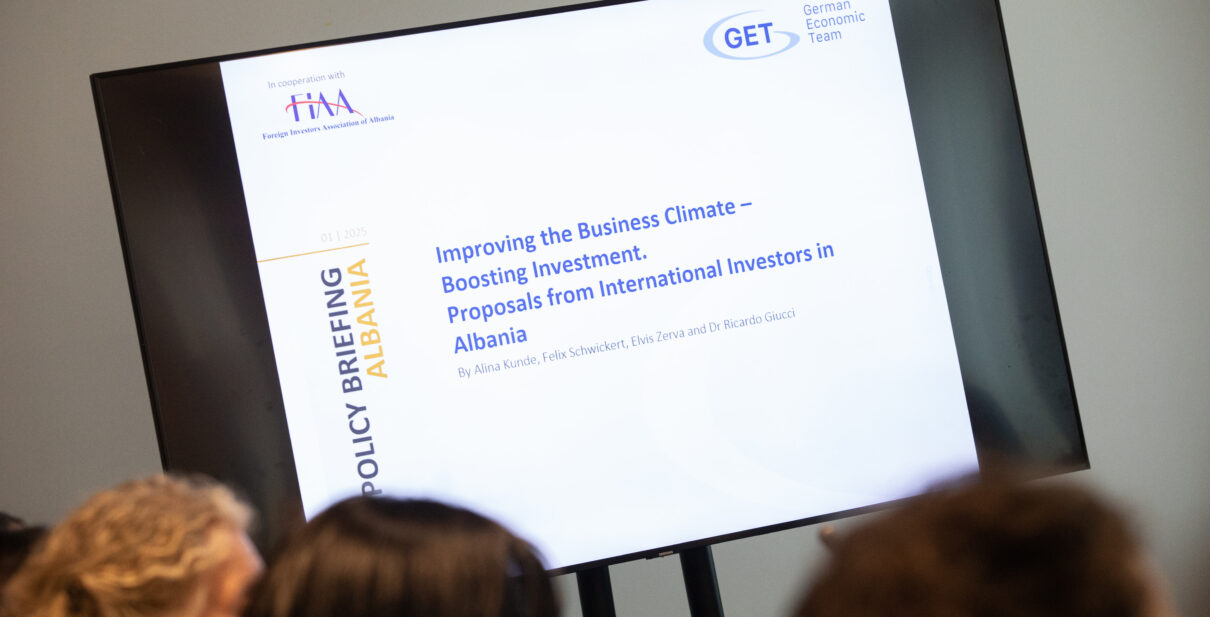 Foreign investors association of Albania in cooperation with the German Economic Team (GET) at the request of the Albanian government and relevant ministries have engaged during 2024 and 2025 through the project entitled: “Improving the Business Climate – Boosting Investment Proposals from International Investors in Albania”.